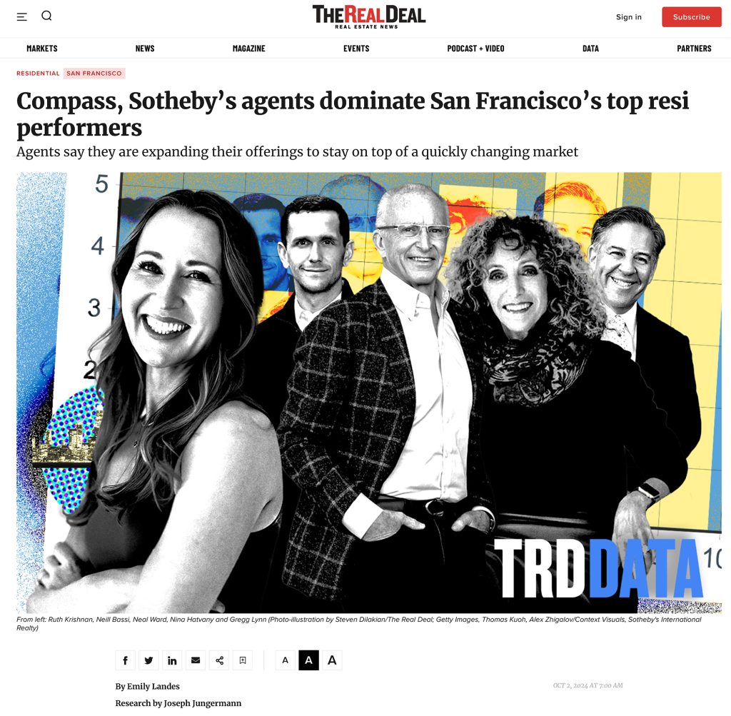 Hatvany had $277 million in volume over 80 sales, according to data compiled by The Real Deal, which tallied agent sales on the buy and sell sides in San Francisco between May 2023 and May 2024. The numbers do not include off-market sales.