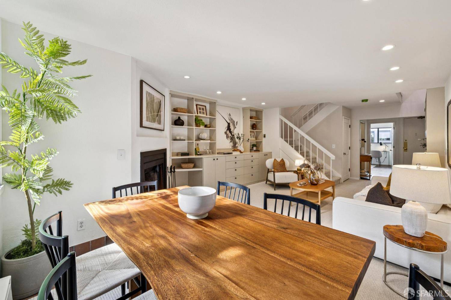 Nestled on the peaceful garden side of a three-level townhouse building, this quiet and tranquil 2-bedroom, 1-bath condo offers the best of city living just one block from Union Street. One of the few units with its own private roof deck, you'll enjoy sweeping views of the Golden Gate Bridge--a perfect setting for morning coffee or sunset gatherings. Inside, the inviting living room features a fireplace, custom built-in bookcases and cabinetry, and large windows framing lush garden outlooks. The updated kitchen showcases sleek quartz countertops and modern appliances, while the refreshed bathroom offers a clean, contemporary feel. Convenience abounds with in-unit laundry, a dedicated parking space in the secure garage, and a large private storage room. An elevator provides easy access to the garage. Enjoy the charm and vibrancy of Cow Hollow with boutique shopping, cafes, and restaurants just steps away. This is city living at its most comfortable modern, quiet, and perfectly located.