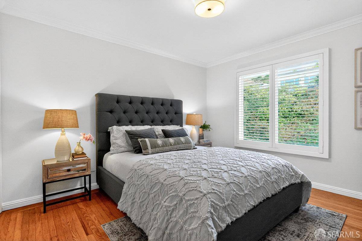 Discover this classic detached Midtown Terrace home, a true gem in a prime location. Encompassing a generous 2,190 sq ft, this residence boasts a versatile floor plan with 3 bedrooms and 2 full bathrooms on the main level and a spacious primary suite bedroom, family room with wet bar, and a den ( or 5th bedroom) on the lower level. Step outside to enjoy the tranquil flat yard, easily accessible from the spacious upper level Ipe deck, family room or bedroom on the first level. Modern conveniences include double pane windows throughout, newer appliances, custom window coverings and stunning hardwood floors on the upper level. The home also features a one-car garage with a laundry area and a storage shed in the back yard. Located in the perfect spot with no front or rear neighbors, it offers serene vistas for a peaceful living experience while the City amenities are easily accessible. West Portal & Inner Sunset shops and restaurants, Forest Hill Muni Station, playgrounds, hiking, bus & freeway access are all close by. This is a rare opportunity!