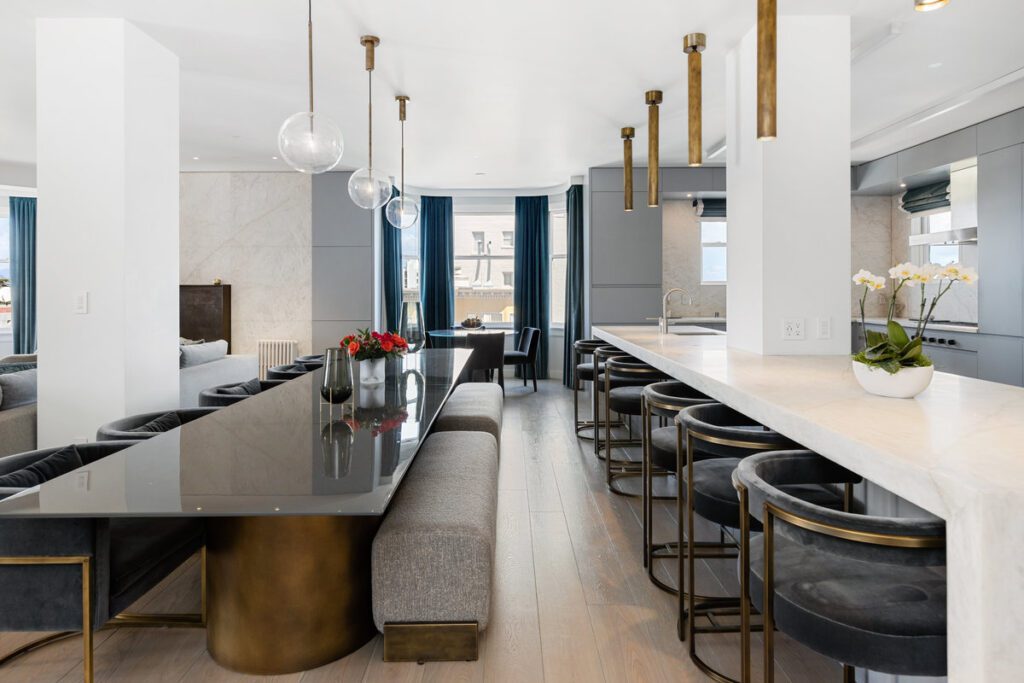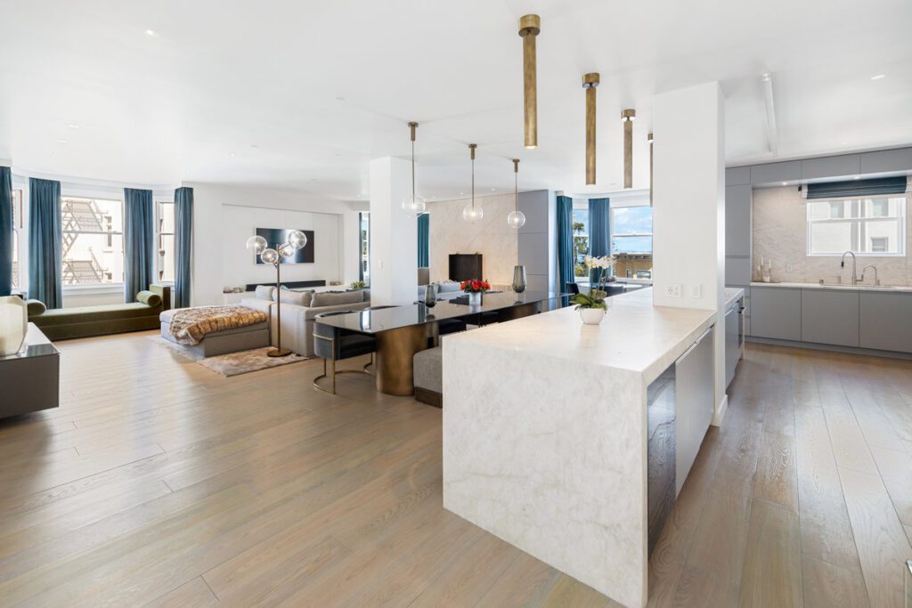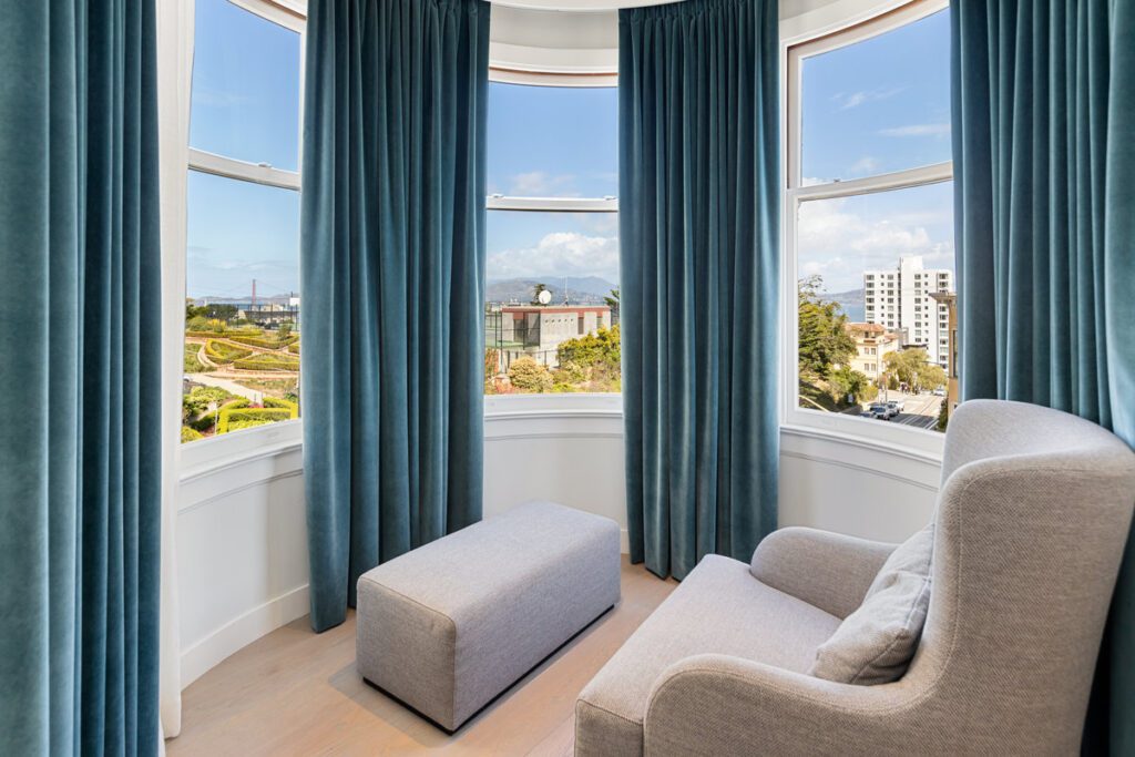 Classic Pre-War elegance combined with timeless contemporary style! Perched atop Russian Hill, this bright and airy historic 1915 flat has incredible light and sweeping views of the city’s famous landmarks. This fabulous cooperative apartment has been meticulously renovated top to bottom by Studio Graf with interior design by Paschal O’Reilly. Incredible period details including soaring ceilings, moldings, and circular window bays are complemented by clean lines and modern design.