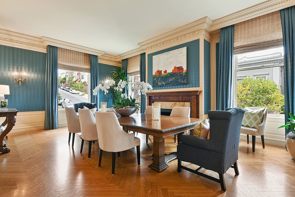 This commanding fully-detached corner home on one of the very best sites in Pacific Heights is ideally positioned on an extra-large lot, maximizing distance to neighboring houses and creating an enhanced sense of spaciousness. It is bathed in light all day, with gorgeous views of the water and City from all four levels. The home includes a large and level sunny yard and an enormous garage. This exclusive estate has only come to market twice in its 114 year history and has had only three owners. A substantial and tasteful multi-million dollar renovation and remodel was completed in 2009, combining the best of seismic and cosmetic upgrades with the existing architectural details.