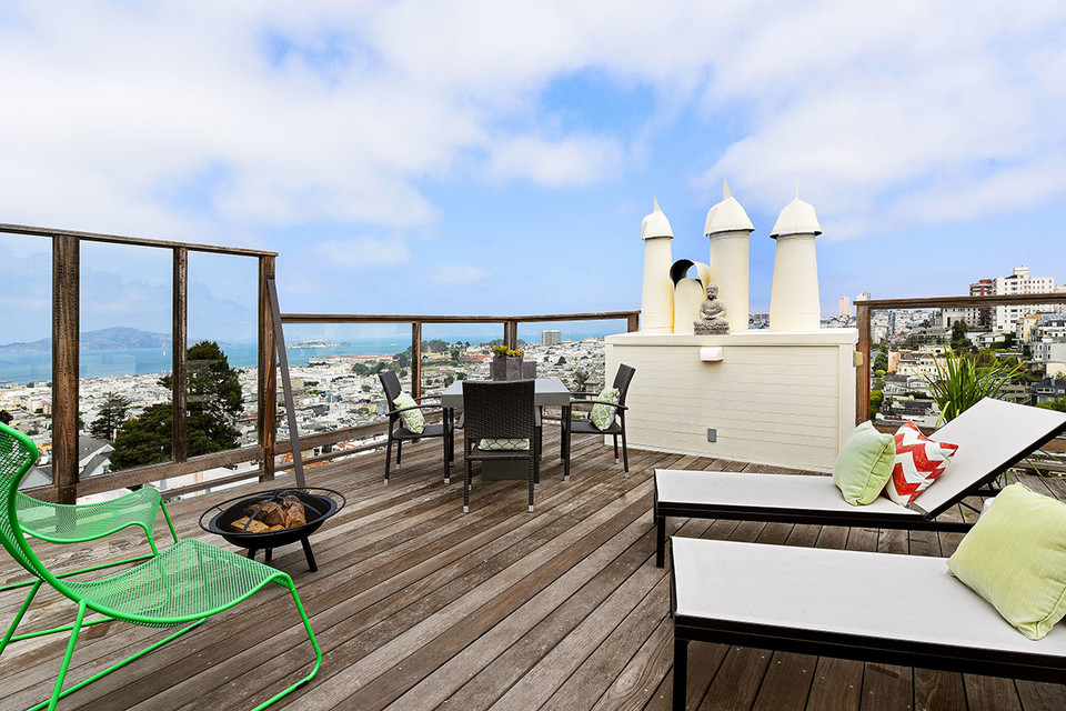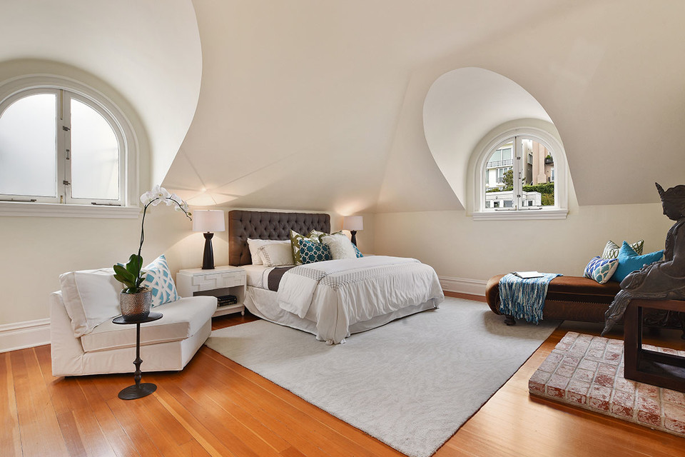 The property is rich with both Pacific Heights and American history. Originally built by renowned architect Albert Farr for the cousin of then-President Teddy Roosevelt and her husband, a capitalist scion of the original San Francisco Water Company, the house blends detailing worthy of its lofty heritage with completely modern amenities. The home has high ceilings throughout and its design is open and airy. It is comprised of seven bedrooms, six full and two-half bathrooms, and includes, among other amenities, an enormous family entertainment room accessing the sunny level yard, a library/study, an office, an expansive view pent-room family room with stairs to an even more amazing view roof deck, an au pair suite, a fully modernized elevator to all four levels, and a recently-added multi-car garage.