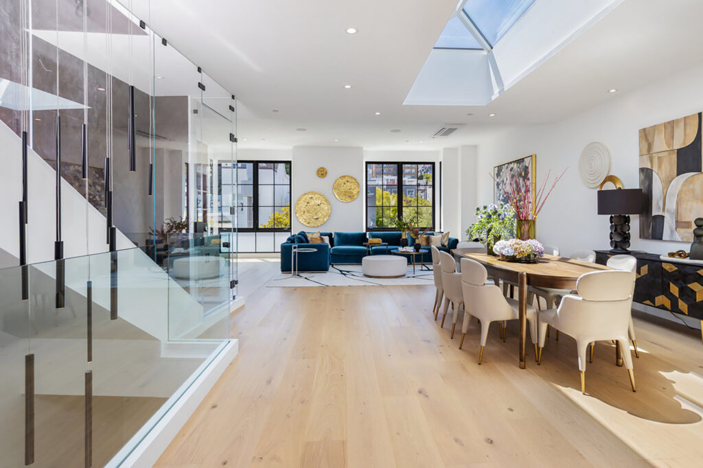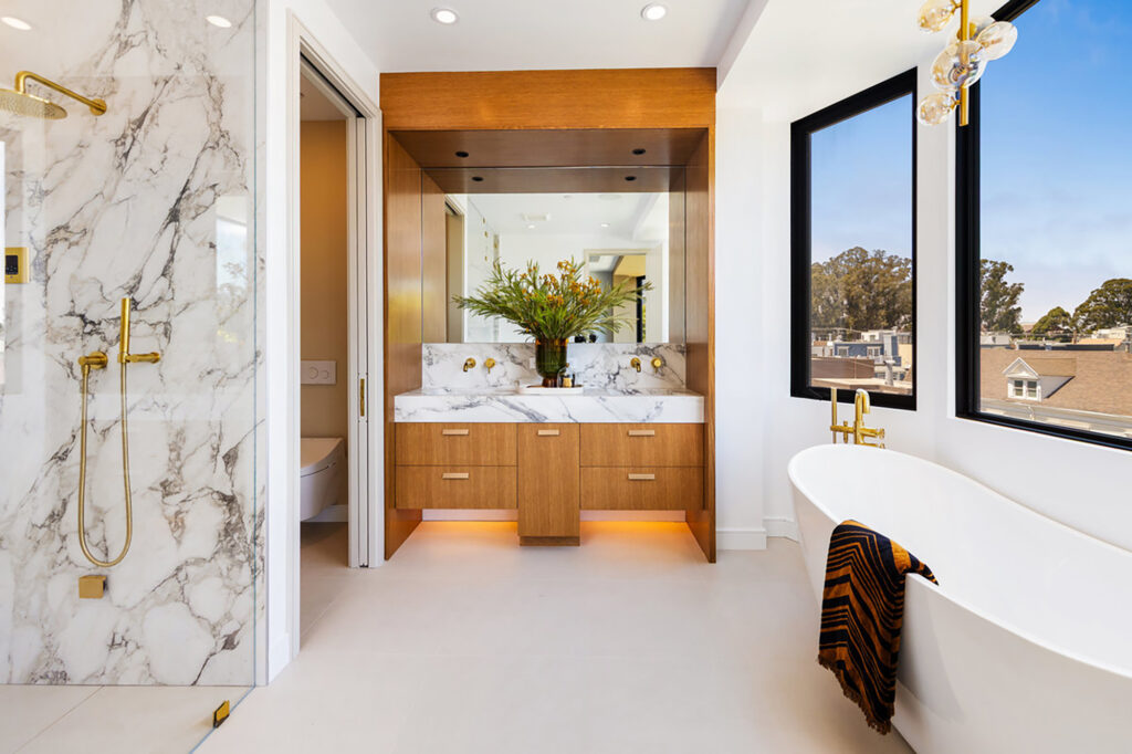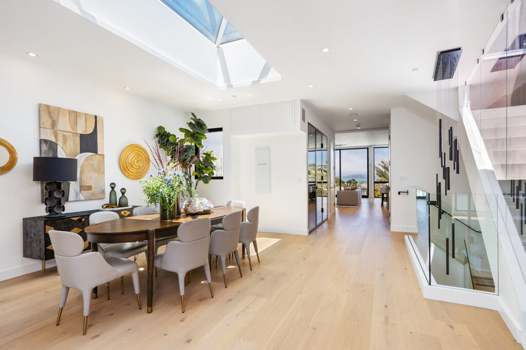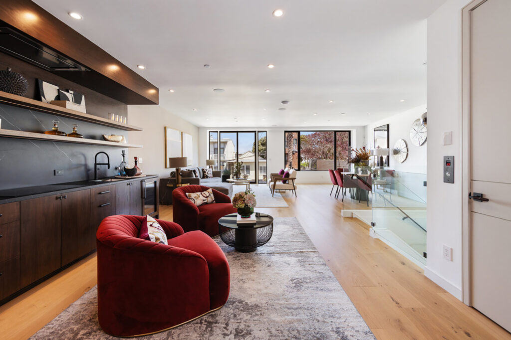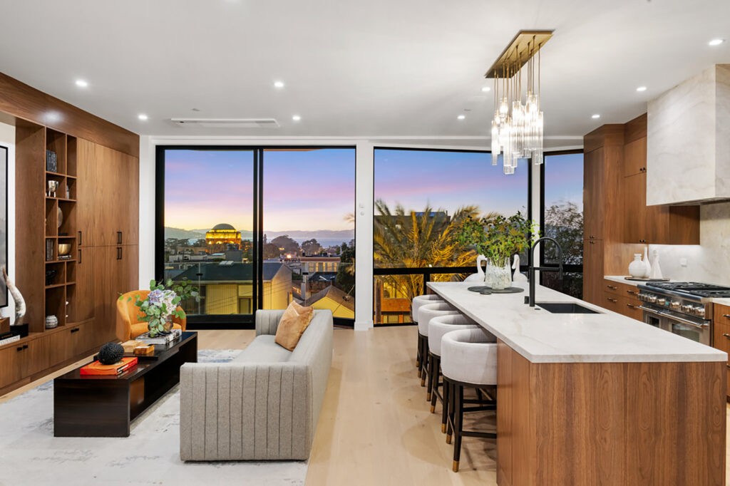 Stunning, newly completed Cow Hollow residence! Experience the epitome of discreet luxury with this pristine property, tucked away on a quiet street, steps from the Presidio. Legally a 2-unit building, this 5-bedroom, 5-full and 2-half bathroom home melds thoughtful architecture with elevated finishes, showcasing beautiful Bay views. An expansive living room on the top level includes a glass-enclosed wine cellar, and the gorgeous chef’s kitchen opens to a family room with fantastic water outlooks. Upstairs is a spectacular roof deck with sweeping views of the Golden Gate Bridge, Bay and Alcatraz. On the bedroom level are 3 bedrooms, 3 baths, and an office, including a sumptuous primary view suite. The two-level lower unit houses an enormous great room, 2 bedroom suites (or office and gym), and a turfed lawn next to a gated driveway and a detached office. No expense has been spared on exquisite finishes and thoughtful upgrades: an elevator, radiant heated floors, AC, smart home integration, 2 laundry rooms, mud room, and 4-car parking, 2 in the garage. Cow Hollow playground, the Presidio, and shops and dining on Union and Chestnut St. are all at your fingertips. A remarkable property that strikes the perfect balance between elegant entertaining and comfortable family living.