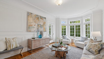 Exquisite one-bedroom condominium in prime Pacific Heights! On a tree-lined block lined with mansions and behind a classic façade, this gorgeous home showcases period details blended seamlessly with modern upgrades. The inviting living room features treetop outlooks through bay windows and beautiful wall paneling and crown moldings, flowing into a formal dining room ideal for elegant entertaining. A fantastic chef’s kitchen has been meticulously renovated with quartz countertops and backsplash, a Bertazzoni gas range and hood, Bosch dishwasher, Liebherr refrigerator, and custom open shelving and cabinetry. The generous bedroom is filled with light from large windows overlooking the street, and two closets. Adjacent is a luxurious marble bathroom outfitted with a double floating vanity and a glass-enclosed shower. Upgrades include in-unit laundry, hardwood flooring, new custom windows throughout and great closet space. This elegant elevator building has been extensively updated and offers a common garden, as well as one-car garage parking and private storage for this unit. Located 2.5 blocks from the entrance to the Presidio, with miles of trails and greenery, and walkable to Alta Plaza Park, Presidio Playground, and neighborhood cafes, shops and restaurants.