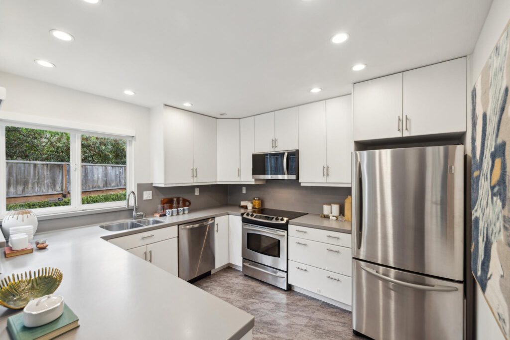 This townhouse-style condo lives like a single family house! The main level of the residence features a spacious living room with a wet bar and a fireplace, a formal dining area open to the kitchen, and a gourmet chef’s kitchen equipped with stainless steel appliances and a peninsula with an overhang for informal dining. Around the corner is a convenient powder room with laundry. Sliding doors lead to a peaceful exclusive patio area surrounded by landscaping, allowing for seamless indoor/outdoor flow. The upper floor houses three bedrooms and two bathrooms on one level. The back bedrooms overlook lush greenery through oversized windows and share an updated hallway bathroom with a shower over the tub. The primary suite offers attractive outlooks and a stylish ensuite bathroom with a walk-in, glass-enclosed shower. Downstairs, the garage accommodates two cars side-by-side as well as an additional bonus storage area. Additional amenities include automatic blinds and in-ceiling radiant heat. This home is situated in the Woods, a peaceful gated community nestled between Forest Hill and Forest Knolls. Homeowners can enjoy the common gym, sauna, deck and social room. Close to hiking trails, shopping in West Portal and Irving Street corridor, Forest Hill MUNI, and easy freeway access. Welcome home!