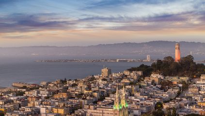 This glorious 2 bedroom 2 bath condominium has expansive views that span from west of Twin Peaks to the North Bay, Alcatraz, and to Yerba Buena Island. Located in the Summit, one of San Francisco's most prestigious buildings, a mid-century Eichler, this corner unit has an oversized living room showcasing the incredible views, and opening onto a large deck that runs the length of the unit and is also accessed by both bedrooms.The cozy view dining area is adjacent to the well-equipped and newly remodeled kitchen, equipped with chic cabinetry and gorgeous stone countertops and backsplash as well as new stainless steel appliances, including a dishwasher, range, and built in microwave. The primary bedroom, with fabulous views, has a spacious and timeless bathroom featuring richly-veined stones and a modern glass enclosed shower, as well as a walk-in closet with ample hanging space. The second bedroom is a good size, along with similarly stunning outlooks. This bedroom is served by a full bathroom that doubles as a guest bath, also with classic stone finishes and featuring a shower over tub. 1-car parking in the secure garage, storage, and a 24-hour doorman and professional management,make this the epitome of luxury living, close to the vibrant shops and restaurants of Russian Hill.